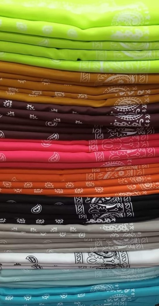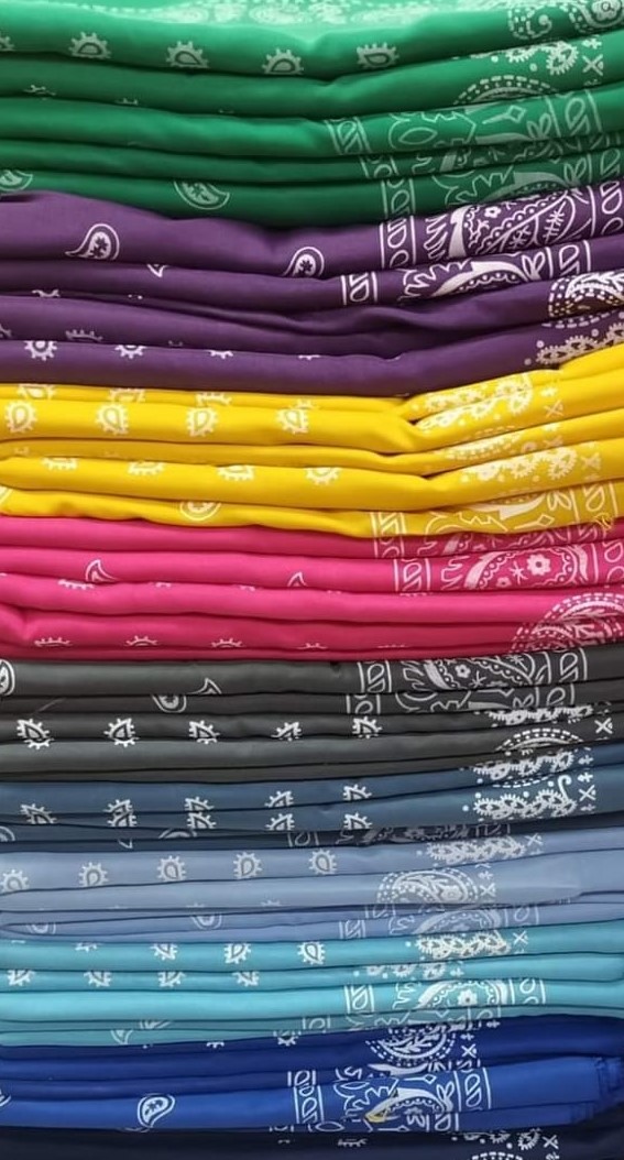 Pañuelo bandana de algodón, de 60x60cm, con estampados búlgaros clásicos, en colores surtidos, por 6 unidades.